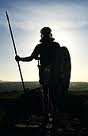 The clear image of a shield strapped to his left arm and a blazing white sword in his right hand. Belt holding tightly the chain-mail and leather strapped war armor that rests snugly against his strong body.